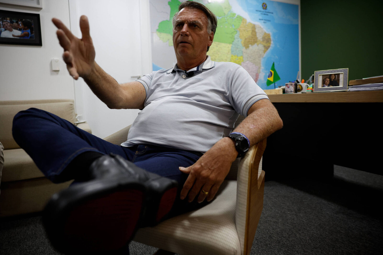 Questionado sobre a possibilidade de ser preso, Bolsonaro comparou sua situação à dos apoiadores envolvidos nos atos de 8 de janeiro. “Ninguém quer estar preso, mas quem cometeu um crime e deve ir preso tem um sentimento. Agora, esses inocentes [de 8 de janeiro] estão presos por quê?”