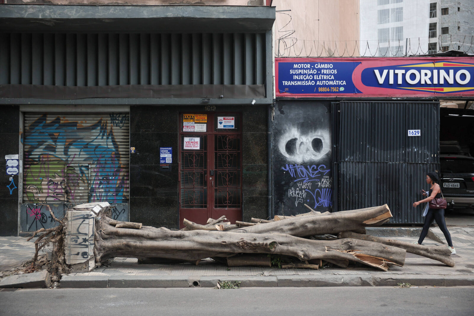 Os casos se espalham por locais movimentados, como a avenida São João. Nesta segunda (17), uma árvore de pelo menos quatro metros estava picotada na calçada, em frente a uma oficina. Outra arrancou parte da calçada, e o toco permanecia por lá.