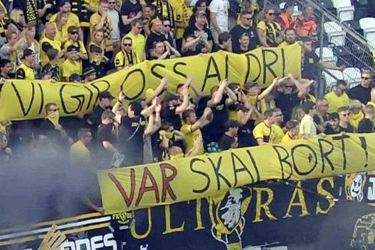 Em letras maiúsculas garrafais, em norueguês, a torcida do Lillestrøm exibiu nas arquibancadas, em partida contra o Rosenborg, o sentimento de seus torcedores, que refletem o de um país.
